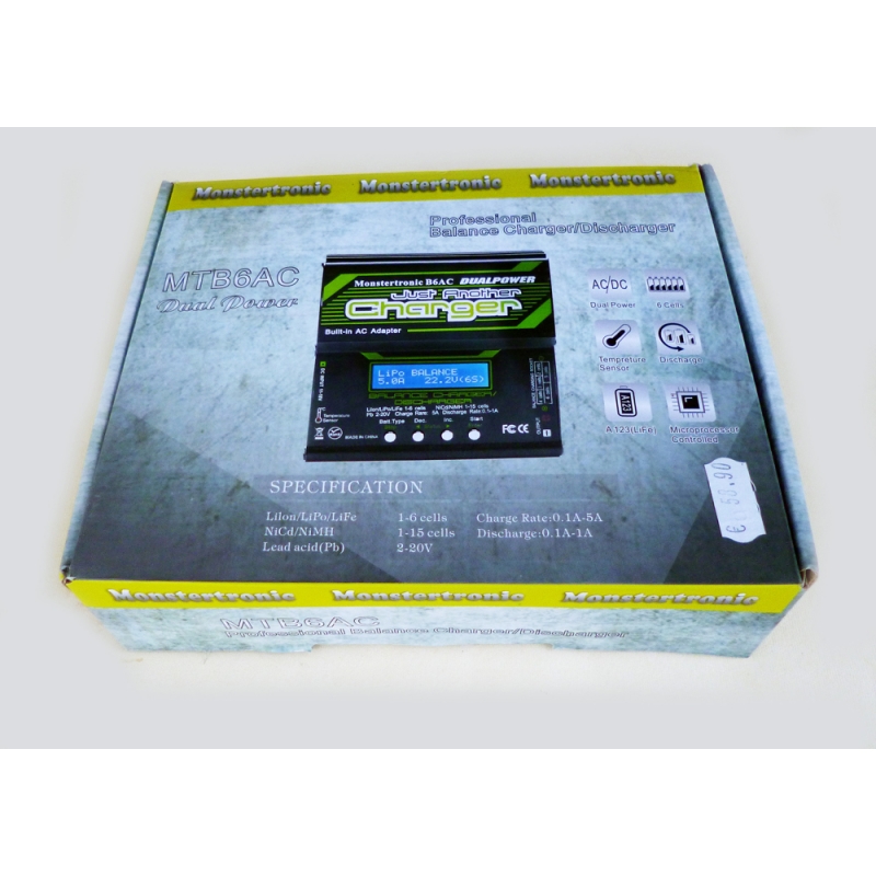 Con il MTB6AC si possono caricare pressoché tutti i tipi di batterie tipiche per modellismo (LiPo, LiFe, LiIo, NiMH, NiCd e Pb).