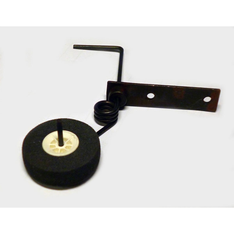Carrellino di coda per aeromodelli con basetta di fissaggio di metallo.