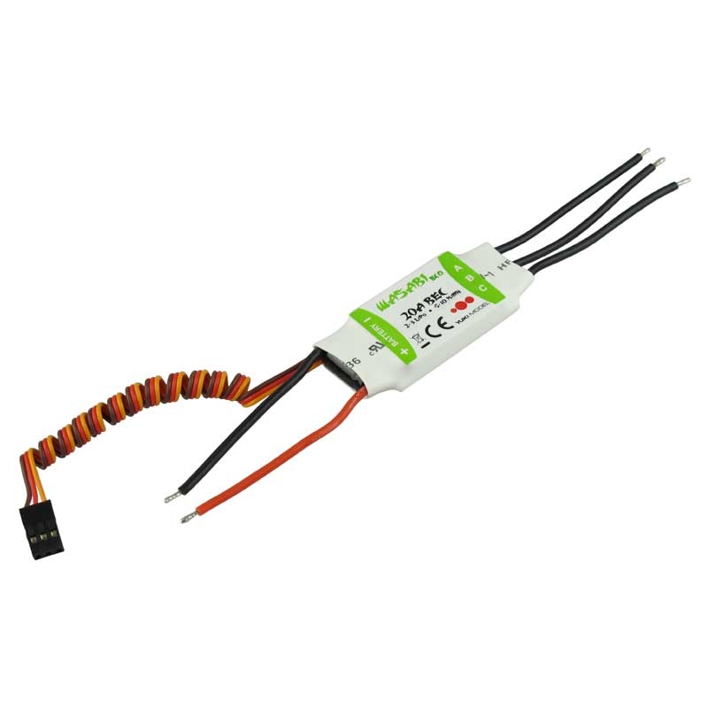 Variatore brushless della serie WASABI ECO con BEC integrato, che può funzionare con batterie NiMH e LiPo.